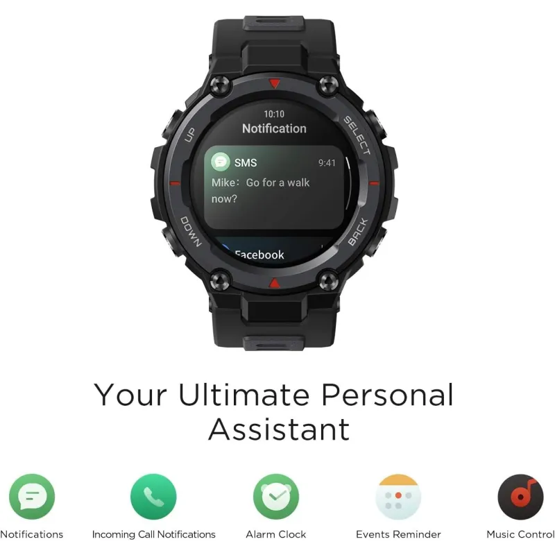 10 ATM A PRUEBA DE AGUA: Con un grado de 10 ATM, el Amazfit T-Rex Pro es resistente al agua hasta una profundidad de hasta 100 metros2, el Amazfit T-Rex Pro puede acompañarlo mientras navega, nada o explora el misterioso mundo submarino juntos.