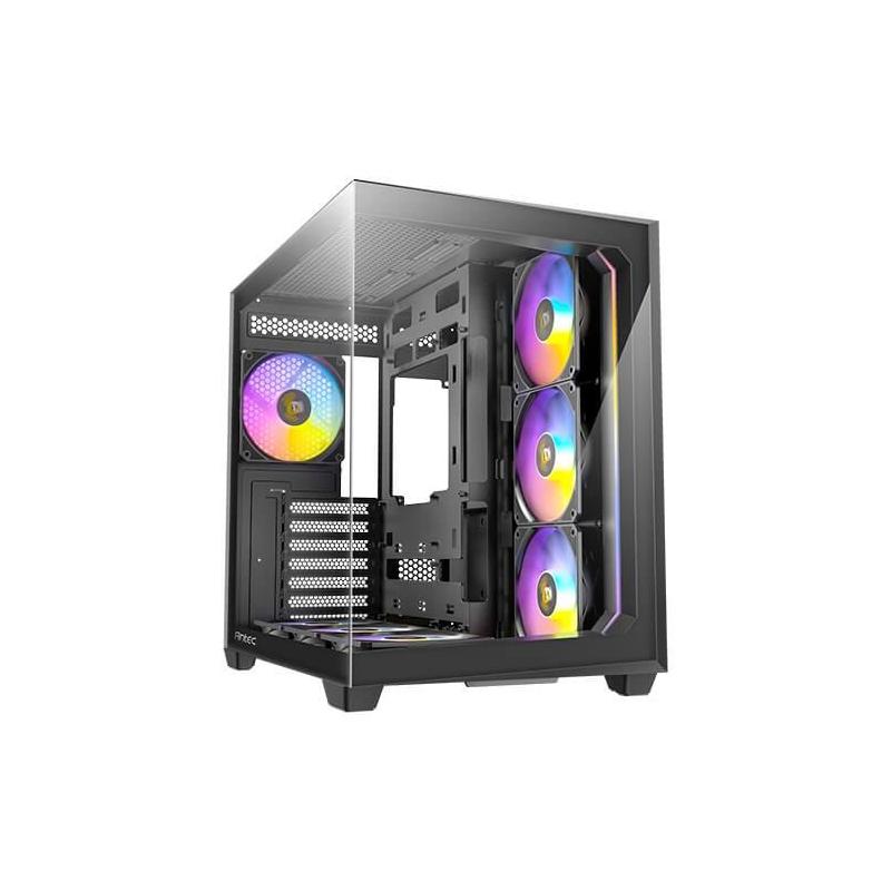 Torre Antec C5 ARGB BLACK diseño en vidrio y acero amplio espacio para GPU de hasta 41 cm excelente refrigeración, color Negra
