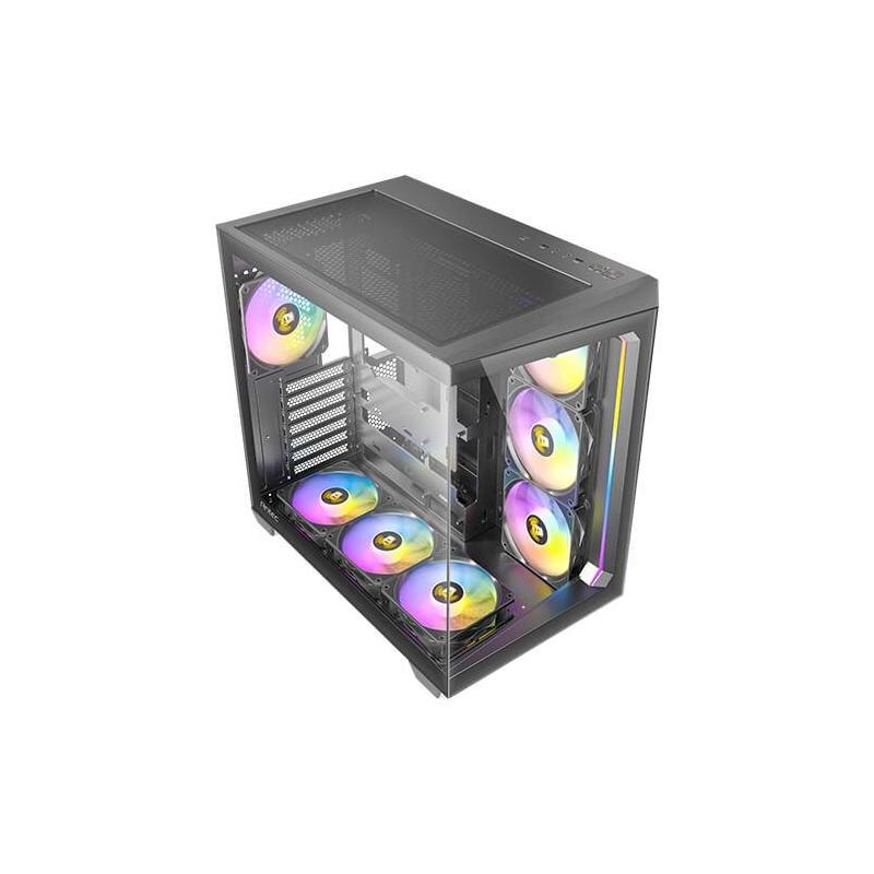 VENTILADORES ARGB PWM PREINSTALADOS CON CONTROLADOR DE VENTILADOR INTEGRADO: 6 ventiladores inversos en el lateral e inferior proporcionan una gran entrada de aire.