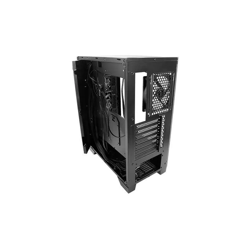 ESPACIO Y ORGANIZACIÓN OPTIMIZADOS: Diseñado para ofrecer la máxima eficiencia, cuenta con dos puertos de 3.5" y dos bahías de 2.5', así como con siete ranuras de expansión. La ventana lateral y la iluminación en colores azul, verde y rojo, ubicada estratégicamente en los ventiladores, permiten una personalización visual atractiva y funcional. Además, incluye paneles de vidrio templado que no solo mejoran el aspecto estético, sino que también proporcionan una visión clara del interior.