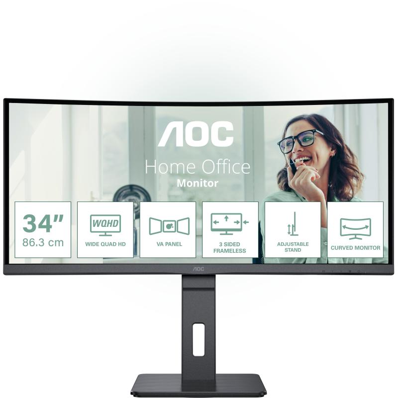 Monitor AOC CU34P3CV sumérgete en una experiencia visual envolvente con su pantalla curva de 34" UWQHD 100Hz, color Negro