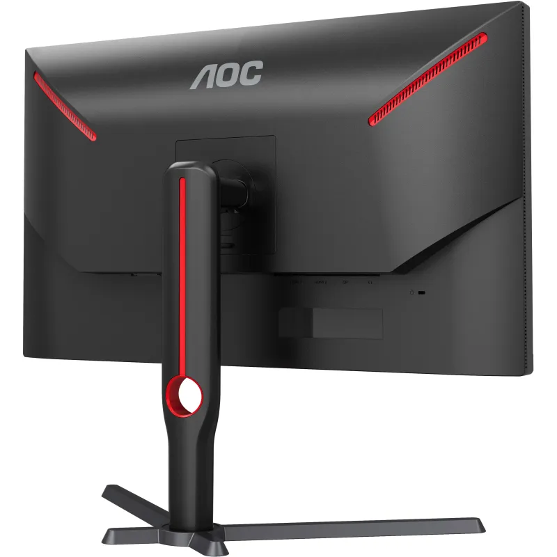 El Monitor Aoc G3 Q27G3XMN/BK no solo destaca por su rendimiento, sino también por su diseño funcional. Su estructura sin marco permite una configuración multimonitor más envolvente y estética. El soporte es completamente ajustable en altura, inclinación, giro y pivote, lo que facilita una postura ergonómica durante largas sesiones. Además, incluye una ranura de seguridad Kensington y es compatible con el montaje VESA 100 x 100 mm. Su diseño en negro con detalles en rojo le da un toque moderno y profesional, ideal tanto para entornos de juego como de trabajo.