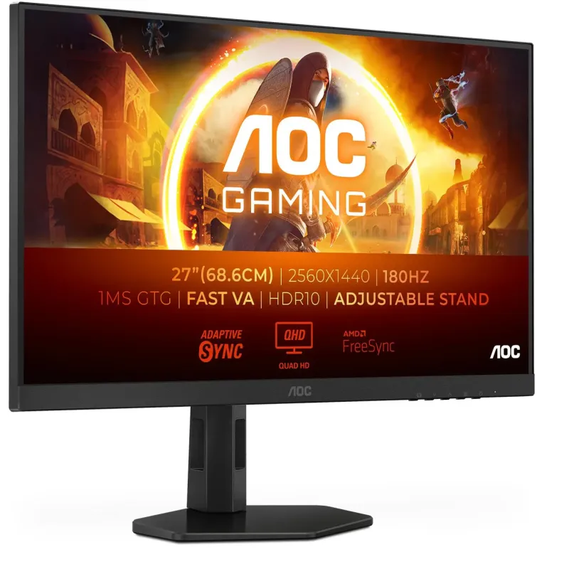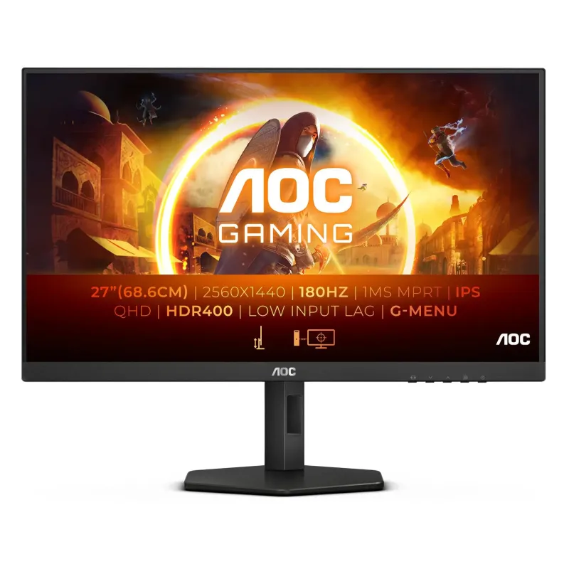 Monitor Aoc G4 Q27G4XD con pantalla Quad HD de 27" tecnología Fast IPS y frecuencia de actualización 180 Hz para imágenes fluidas y detalladas.