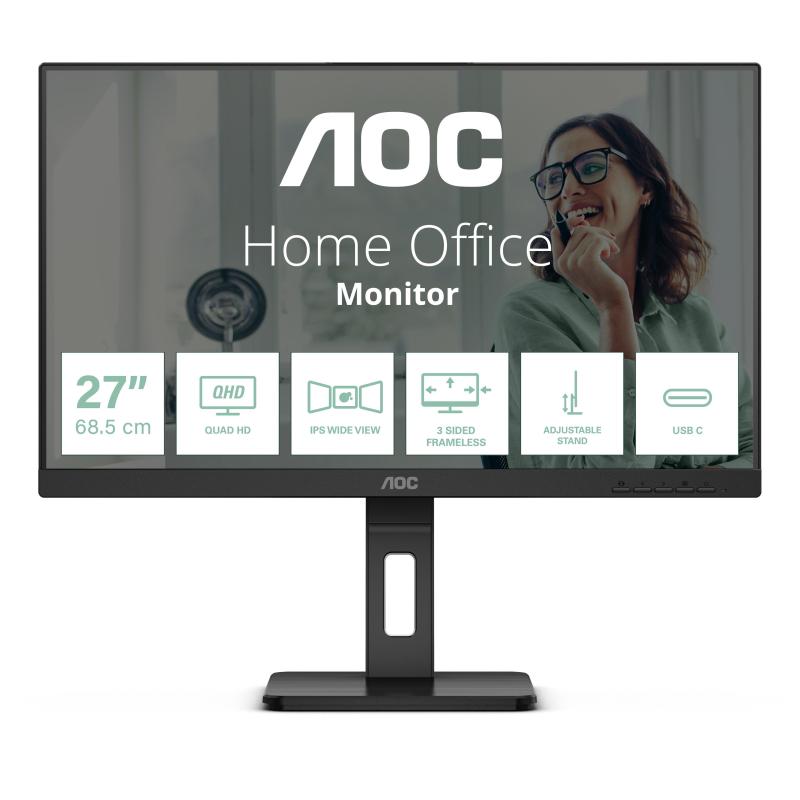 Monitor AOC Professional Q27P3CV disfruta de una pantalla IPS Quad HD de 27" con 75 Hz HDR USB-C 65W altavoces, color Negro