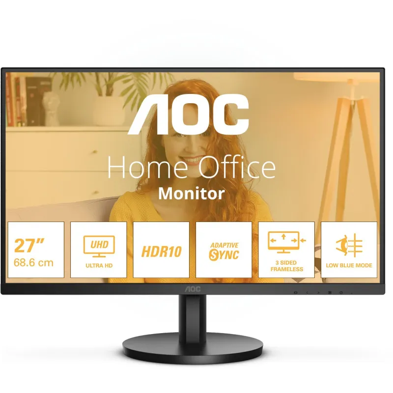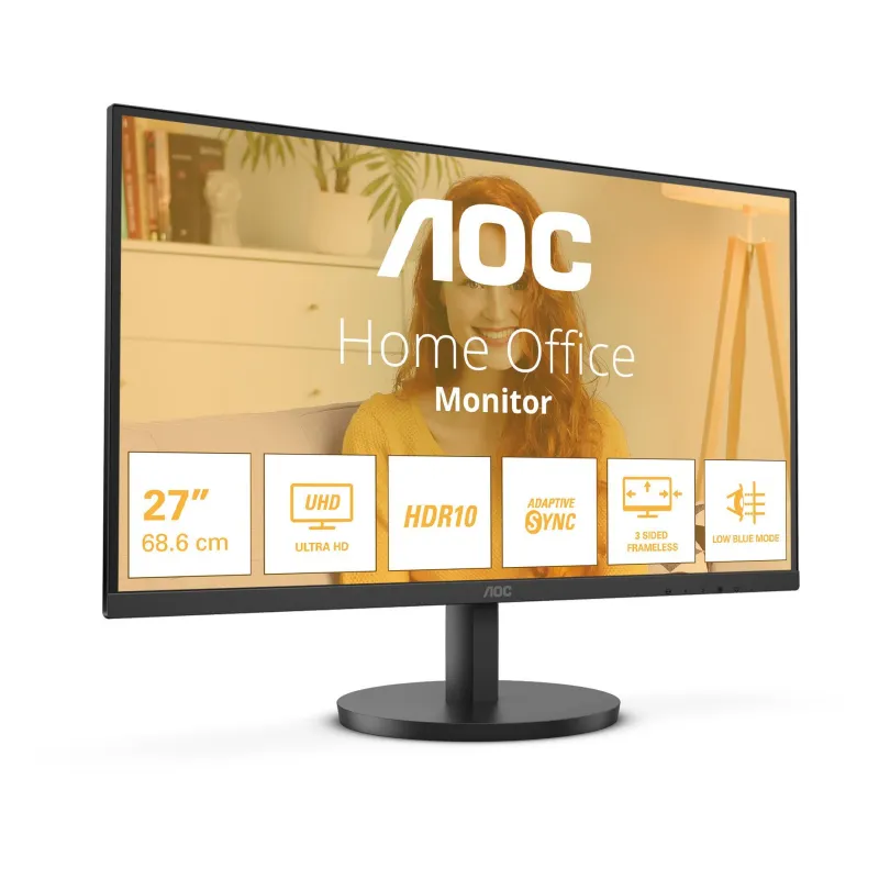 Monitor AOC U27B3 27" LCD VA Resolución UHD 4K (3840x2160), Frecuencia de 60 Hz, 4 ms de Tiempo de Respuesta, x2 HDMI 2.0 y x1 DisplayPort 1.4