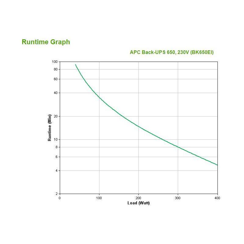 Su batería de tecnología Sealed Lead Acid (VRLA) ofrece una capacidad de 9 Ah y 95 VAh, con un tiempo típico de respaldo de 4,7 minutos a carga completa y hasta 14,7 minutos a media carga. La batería tiene una vida útil de hasta 6 años y se recarga completamente en 8 horas, con una función de prueba automática para asegurar su desempeño.