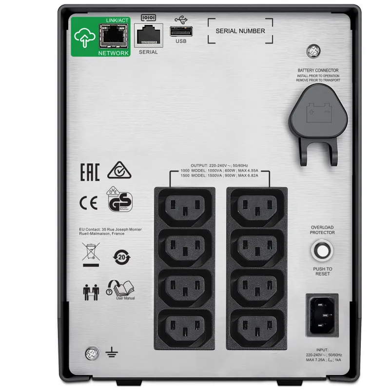 SAI Apc SMC1000IC con tecnología de batería VRLA, capacidad de potencia de salida 1 kVA y regulación automática de voltaje para mayor protección