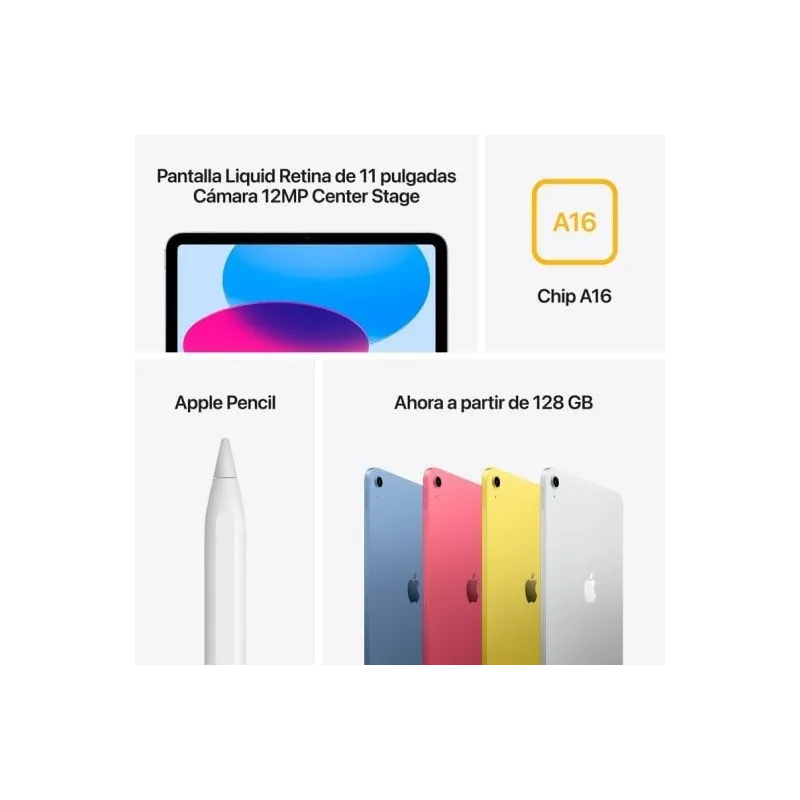 Este iPad de 11" con chip A16 y 256 GB encaja cuando quieres una tableta ligera para estudiar, ocio y videollamadas, con espacio suficiente para apps, fotos y archivos sin ir “justo”.