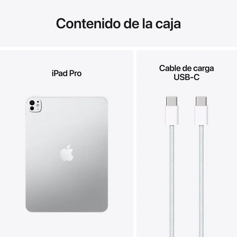 La Tablet Apple iPad Pro M5 11" WiFi 12GB/512GB Plata ofrece 512 GB de almacenamiento interno tipo flash, lo que permite guardar grandes volúmenes de archivos, aplicaciones y contenido multimedia sin preocuparse por el espacio. Este almacenamiento rápido se combina con conectividad avanzada como Wi-Fi 7 y Bluetooth 6.0 para asegurar transferencias de datos estables y veloces. Además, incluye un puerto Thunderbolt 3 y compatibilidad con USB Type-C DisplayPort, facilitando la conexión con pantallas externas y periféricos profesionales. Su compatibilidad con el conector magnético y el Smart Connector de Apple amplía sus posibilidades de uso con accesorios como teclados o bases de carga, convirtiéndola en una estación de trabajo portátil altamente funcional.