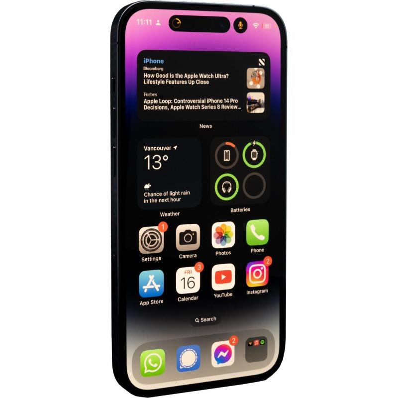 Con un diseño elegante en color morado, combina vidrio y acero inoxidable para un acabado moderno y sofisticado. La duración de la batería permite 75 horas de reproducción de audio, lo que te mantiene conectado y entretenido durante todo el día. Disfruta de la integración perfecta con iOS 16 y las aplicaciones preinstaladas que optimizan tu experiencia diaria con tu nuevo smartphone Apple iPhone 14 Pro.