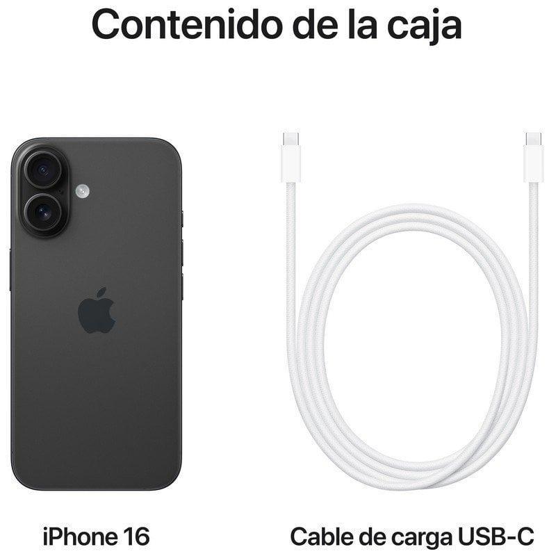 Smartphone Apple iPhone 16 128GB Negro con pantalla Super Retina XDR de 6.1" chip A18 cámara dual de 48 MP, 5G ,iOS 18 , carga inalámbrica e IP68.