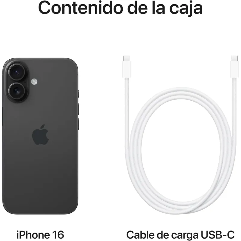 Smartphone Apple iPhone 16 512GB Negro Pantalla Super Retina XDR OLED, chip A18 ,cámara de 48 MP, 5G ,iOS 18  y batería de larga duración con diseño premium