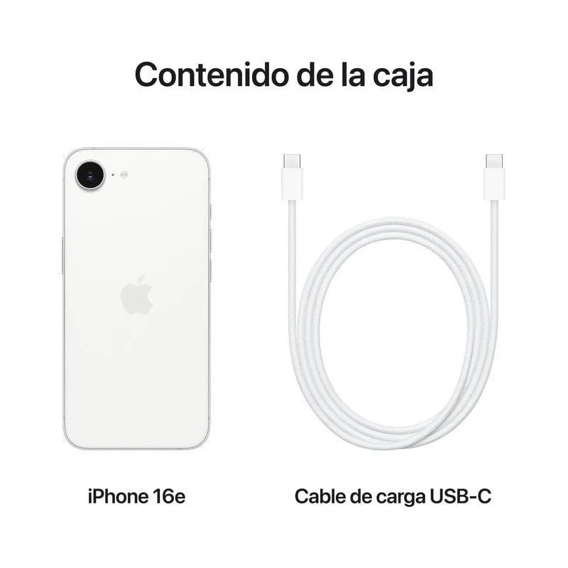 Smartphone Apple iPhone 16e procesador Apple A18 cámara de 48 MP pantalla Super Retina XDR de 6.1" USB-C 5G y iOS 18 Rendimiento y elegancia en uno color blanco