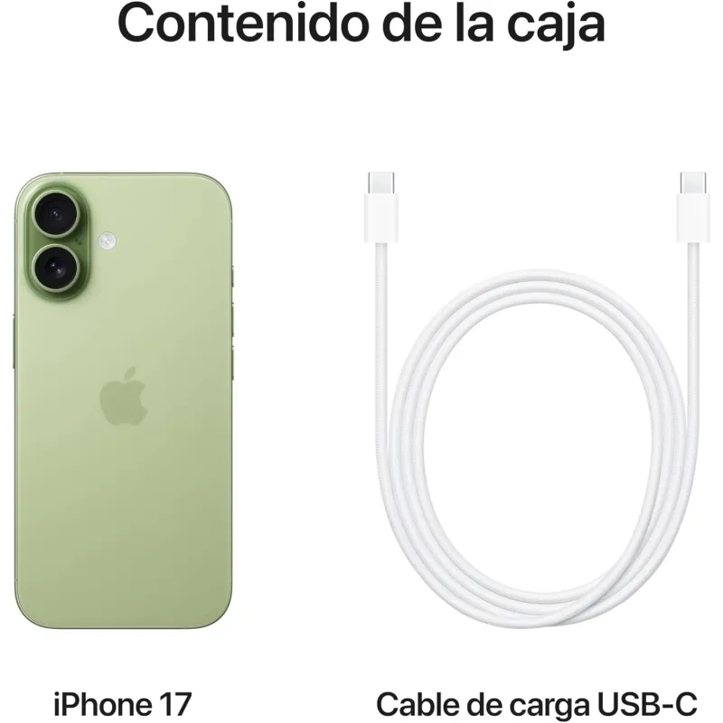 Smartphone Apple iPhone 17 512GB Verde Salvia con pantalla Super Retina XDR, procesador Apple A19 y cámara dual de 48 MP con grabación en 4K