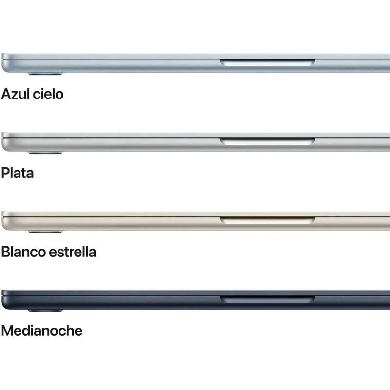 Este MacBook Air de 15,3" está pensado para quien quiere una pantalla grande sin cargar con un portátil pesado. Con 1,51 kg y 11 mm de grosor, es fácil de llevar entre casa, oficina o clases, y a la vez ofrece un panel amplio para trabajar con varias ventanas sin agobios.