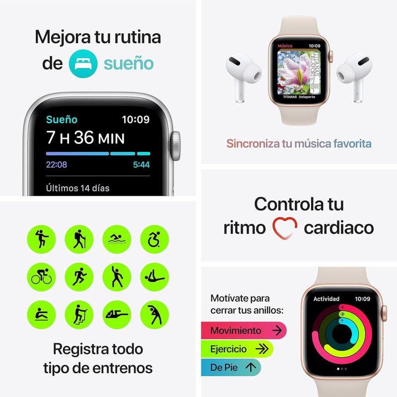 COMPAÑERO DE ENTRENO IDEAL: Si te gusta hacer ejercicio, este reloj es tu compañero ideal. Con la app Entreno mejorada, podrás ejercitarte a otro nivel con las mediciones avanzadas, los planes personalizados y las funciones multideporte. Podrás medir tu ritmo cardiaco, tus calorías quemadas, tu distancia recorrida y mucho más. Además, podrás disfrutar de tres meses gratis de Apple Fitness+, el servicio de entrenamiento personalizado que te ofrece clases de yoga, baile, HIIT y otras disciplinas. Y si quieres motivarte aún más, podrás compartir tus resultados con tus amigos y competir con ellos en los desafíos de actividad. Con este reloj, tu entrenamiento será más divertido y efectivo que nunca.