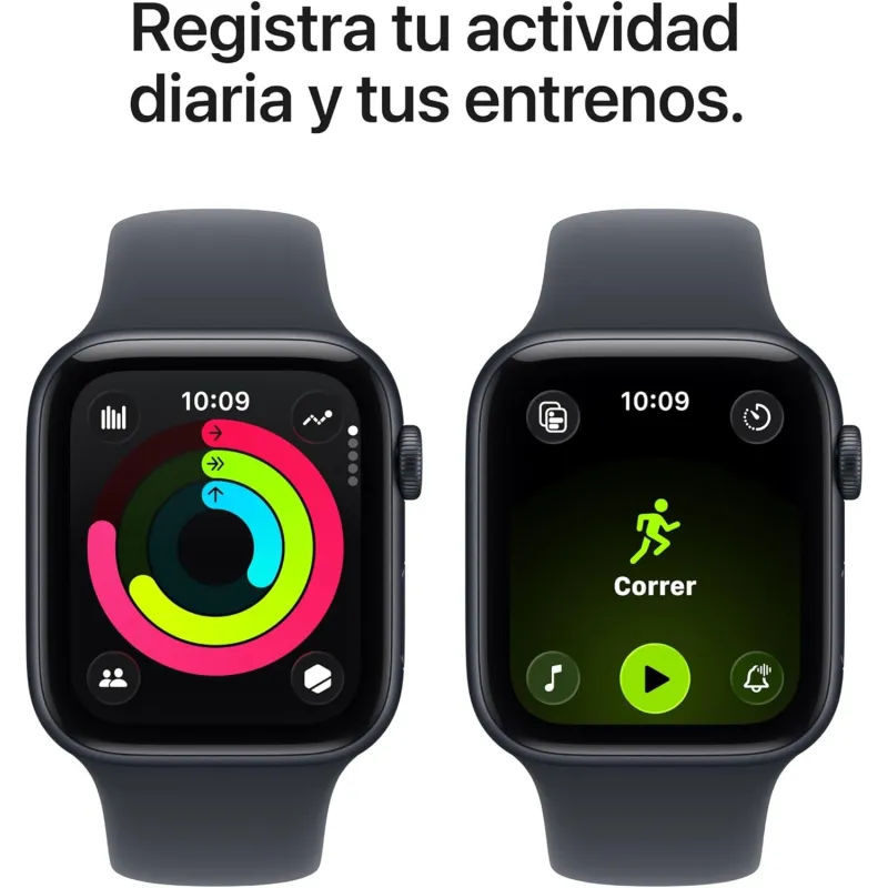 En su interior, el Smartwatch Apple Watch SE 3 GPS + Cellular 44mm MEPH4QL/A  incorpora un potente procesador Apple S10 de cuatro núcleos y una unidad de procesamiento neuronal Apple Neural Engine, lo que permite un rendimiento fluido y eficiente en todas sus funciones. Dispone de 64 GB de memoria interna, altavoces y micrófono integrados, y sensores avanzados como acelerómetro, giroscopio, altímetro y sensor de temperatura de la piel. Entre sus funciones destacan la detección de caídas y accidentes, la monitorización de ruido y sueño, y el seguimiento multideporte, incluyendo actividades como natación, ciclismo, yoga o golf. También incluye prestaciones de accesibilidad como AssistiveTouch y VoiceOver. Gracias a su batería de ion de litio con autonomía de hasta 18 horas y recarga rápida al 80% en solo 45 minutos, este reloj inteligente está diseñado para acompañarte durante todo el día con eficiencia y estilo.
