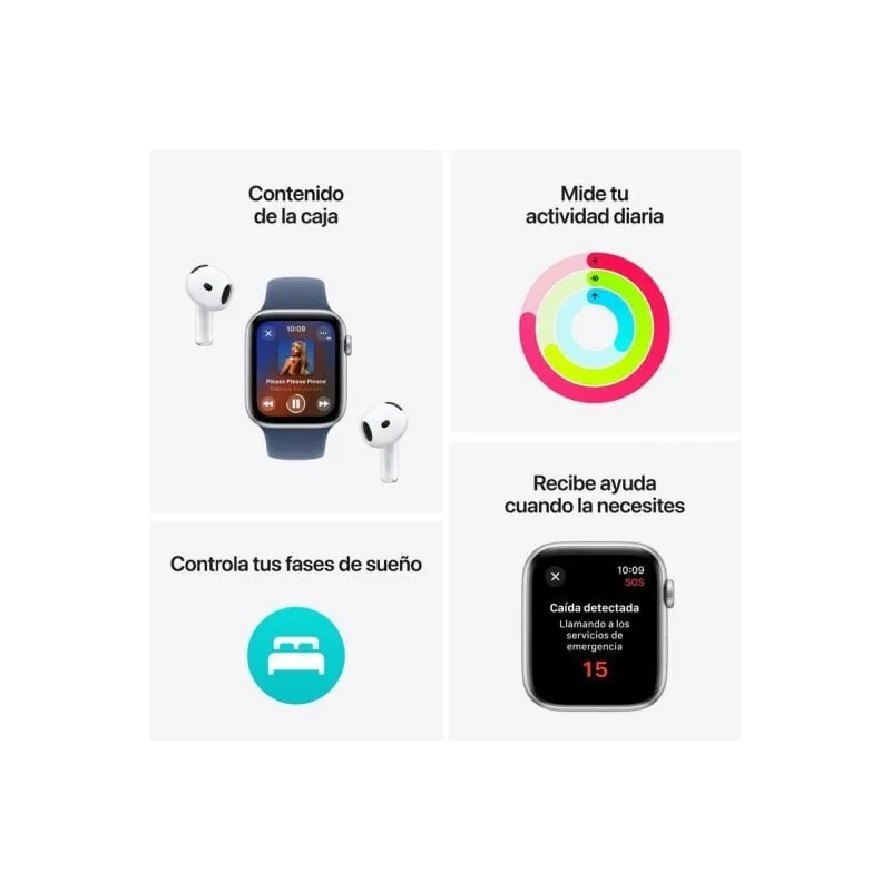MUCHO MÁS AL ALCANCE DE TU MUÑECA: Mil y una facilidades para conectar con tu gente. Datos de ejercicio que te motivan. Prestaciones innovadoras de salud y seguridad. Y como quieres darle tu toque, correas en colores increíbles. El Apple Watch SE rebosa cosas buenas a un precio que sienta muy bien.