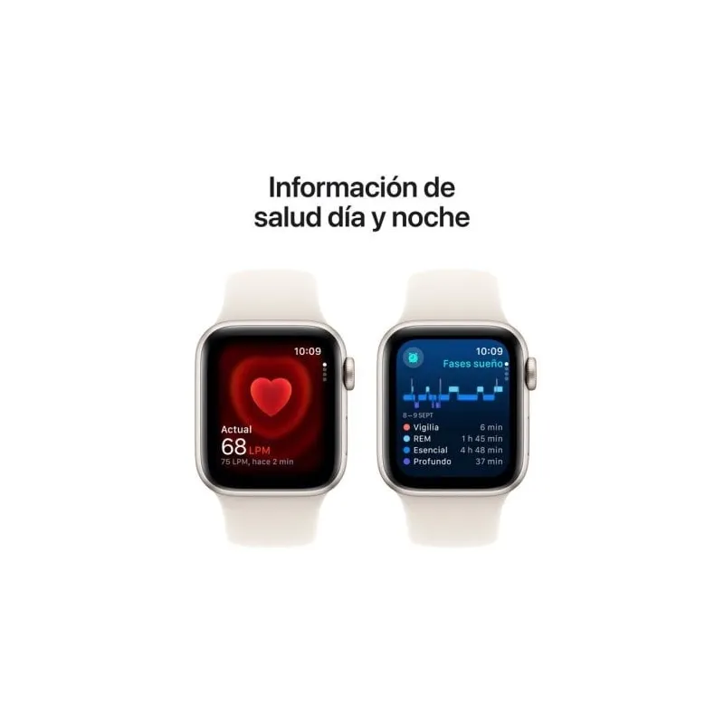 Este Smartwatch Apple Watch SE MXGK3QL/A ofrece una experiencia avanzada con un diseño elegante y funcional. Incorpora una pantalla OLED 324 x 394 píxeles que proporciona una visualización nítida y luminosa gracias a sus 1000 cd/m² de brillo. Su cuerpo de aluminio en color beige y la correa de caucho extraíble lo hacen cómodo y versátil para el uso diario. Este modelo de Smartwatch Apple Watch SE MXGK3QL/A cuenta con una resistencia al agua de hasta 50 metros, ideal para actividades acuáticas. Además, incluye sensores como altímetro, acelerómetro, giroscopio y monitor de frecuencia cardíaca óptico, lo que permite un seguimiento preciso de la actividad física y la salud. Su compatibilidad con iOS y el sistema operativo watchOS 11 garantizan una integración perfecta con dispositivos Apple.