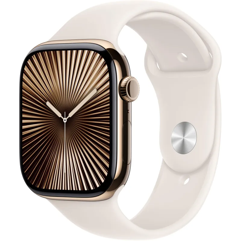 Apple Watch Series 10 46mm Caja Titanio Oro con Correa Deportiva Blanco Estrella S/M