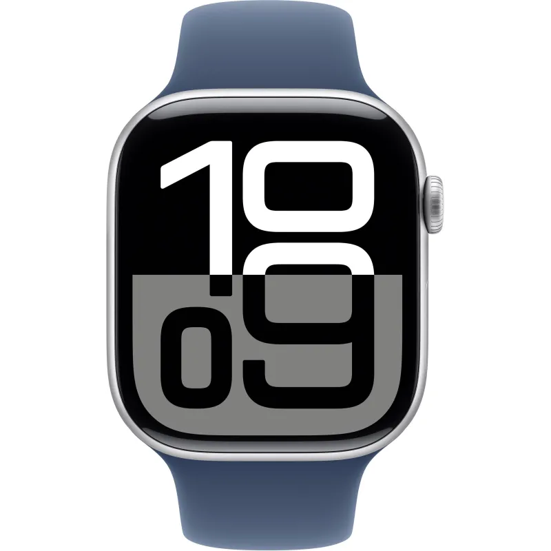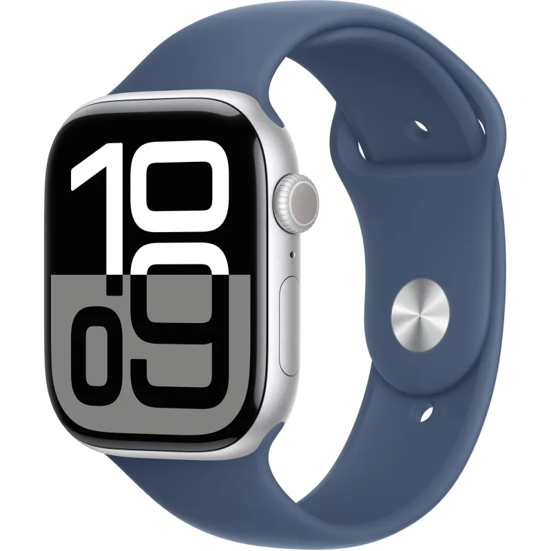 Apple Watch Series 10 GPS 46mm Caja Aluminio Plata con Correa Deportiva Azul Denim S/M