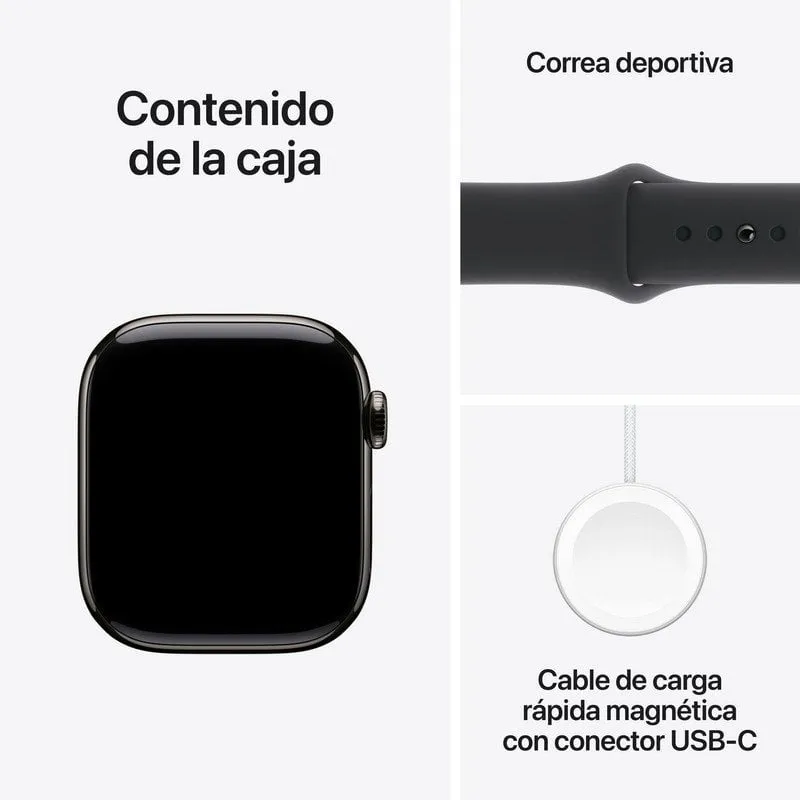 Apple Watch Series 10 MWXG3QL/A GPS + Cellular 42mm Caja Titanio Pizarra con Correa Deportiva Negra S/M