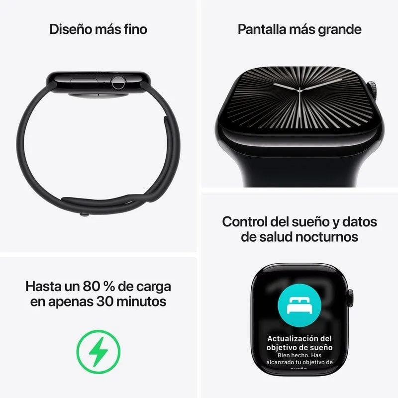 Smartwatch Apple Watch Series 10 con pantalla OLED 374 x 446 procesador Apple S10 resistencia al agua GPS sensor de temperatura