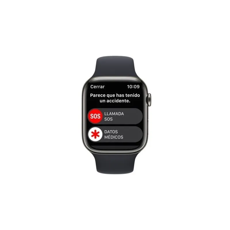 LA INNOVACIÓN QUE ESPERAMOS QUE NUNCA NECESITES: Presentamos la detección de accidentes. La ayuda viene automáticamente. El Apple Watch Series 8 detecta si has tenido un accidente grave de coche. Si es así, puede llamar automáticamente al 112, enviar tu ubicación a los servicios de emergencia y avisar a los contactos que hayas definido.2 Esta nueva prestación del Apple Watch es posible gracias al giroscopio de tres ejes mejorado y a un nuevo acelerómetro de fuerza g alta, que ofrece un alto rango dinámico superior al de cualquier otro reloj inteligente. También usa un micrófono, barómetro, GPS y un algoritmo avanzado de fusión de sensores entrenado con más de un millón de horas de conducción y colisiones reales para saber si has sufrido un accidente.