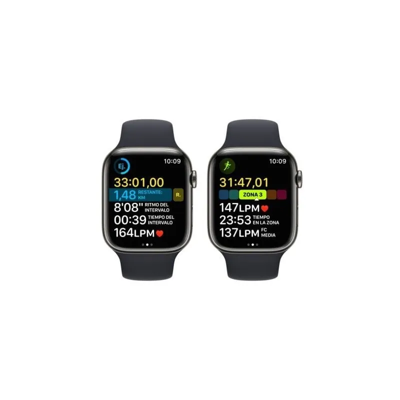 NUEVAS FORMAS DE ENTRENAR. UNA MEJORA MUY PERSONAL: Correr, nadar, hacer abdominales y mucho más: el Apple Watch tiene un montón de ejercicios para ti en la app Entreno mejorada. Con las nuevas vistas de entreno, podrás consultar rápidamente métricas exhaustivas como las Zonas de Frecuencia Cardiaca e intervalos personalizados que te ayudan a mantener el ritmo.