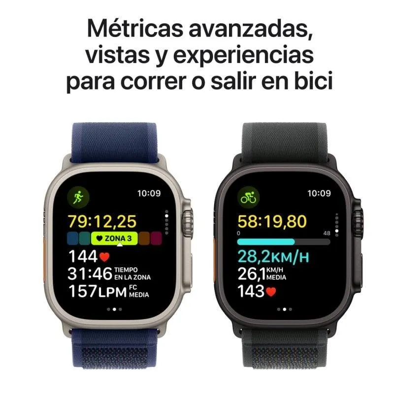Equipado con el potente procesador Apple S9, este smartwatch ofrece un rendimiento fluido y eficiente. Su memoria flash de 64 GB permite almacenar aplicaciones y datos sin preocupaciones. Además, cuenta con sensores avanzados como el monitor de frecuencia cardíaca, el sensor de oxígeno en sangre y la detección de caídas, lo que lo convierte en un dispositivo ideal para el seguimiento de la salud y el bienestar. Su resistencia al agua de 10 ATM y certificación MIL-STD-810H garantizan durabilidad en condiciones extremas, siendo perfecto para actividades como natación, senderismo y buceo.