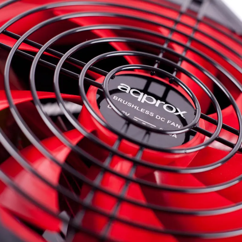 DISEÑO ELEGANTE Y FUNCIONAL: Presenta un atractivo color negro y utiliza un tipo de enfriamiento activo para mantener temperaturas óptimas. Está equipado con un ventilador de 14 cm situado en la parte superior, que asegura una eficiente disipación del calor. Además, incluye un interruptor de encendido/apagado integrado, ofreciendo una facilidad de uso adicional.