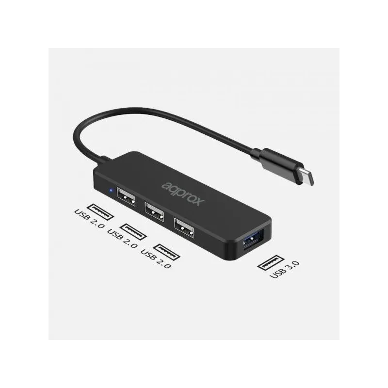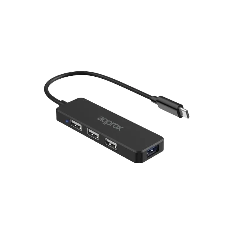 Approx APPC48 HUB USB-C a USB-A 2.0 y 3.0 4 Puertos 15 cm Negro