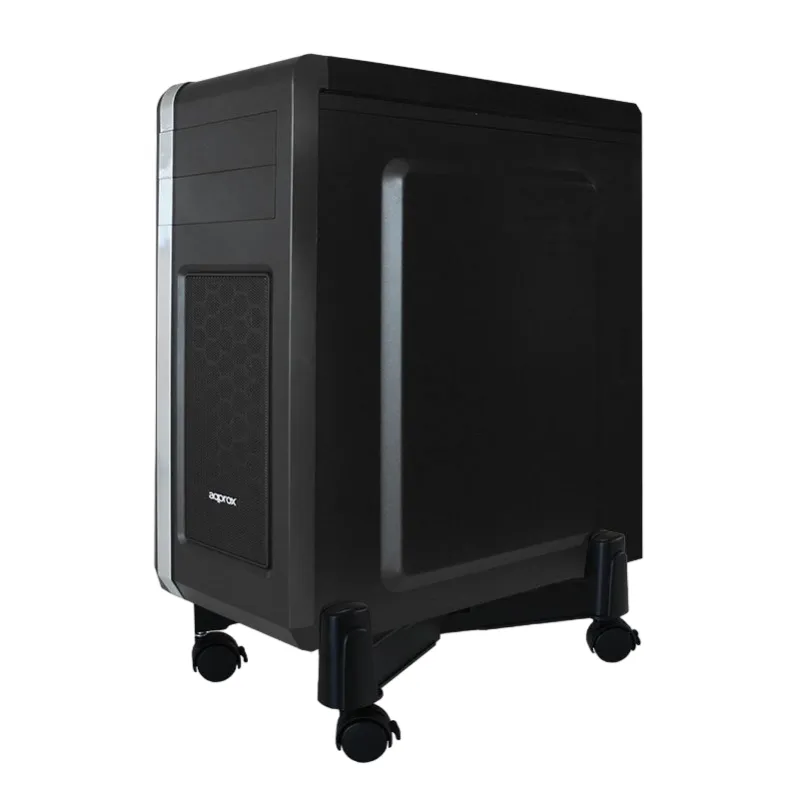 Soporte con ruedas ajustable para CPU. Compatible con la mayoría de cajas para PC. Cuenta con sistema de freno integrado y es capaz de sopoortar cargas hasta 50Kg.