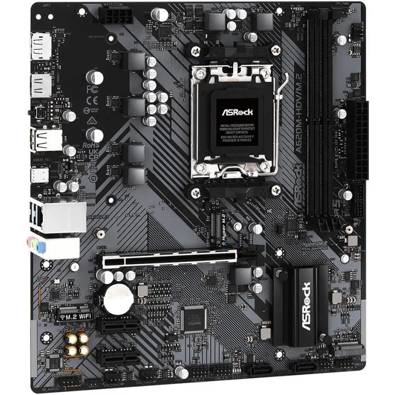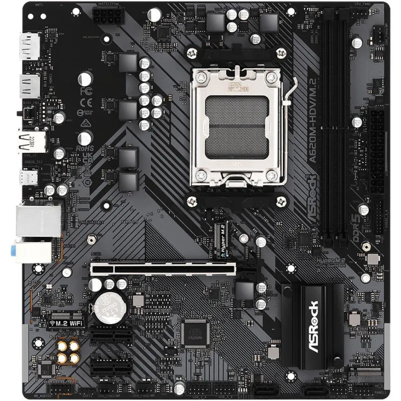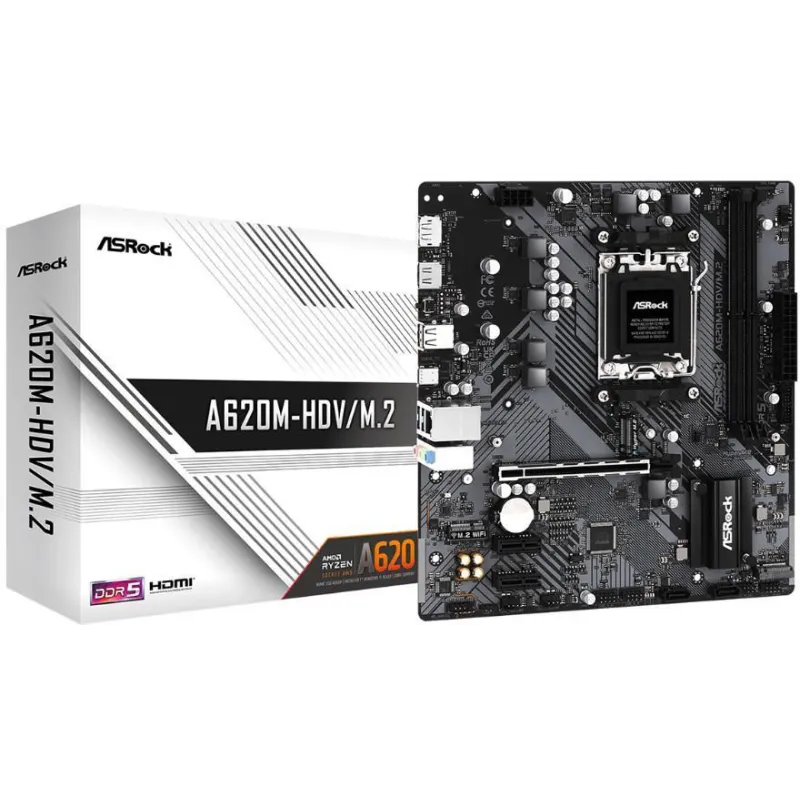 Placa Base Asrock A620M-HDV/M.2 con soporte para Ryzen 7000 DDR5 RAID M.2 USB-C y audio 7.1 Rendimiento y conectividad en formato micro ATX.