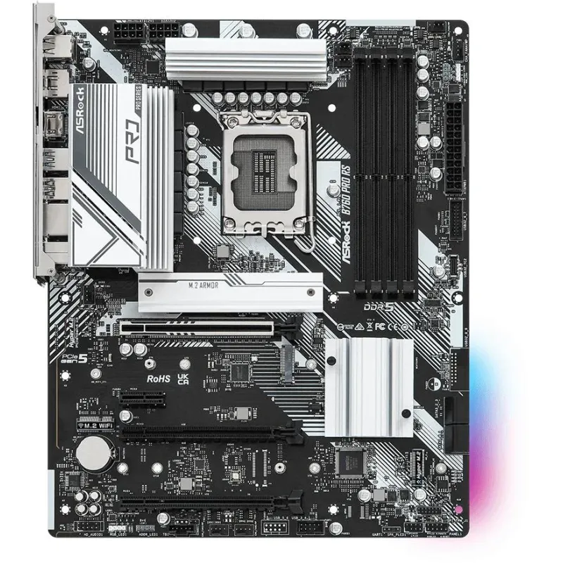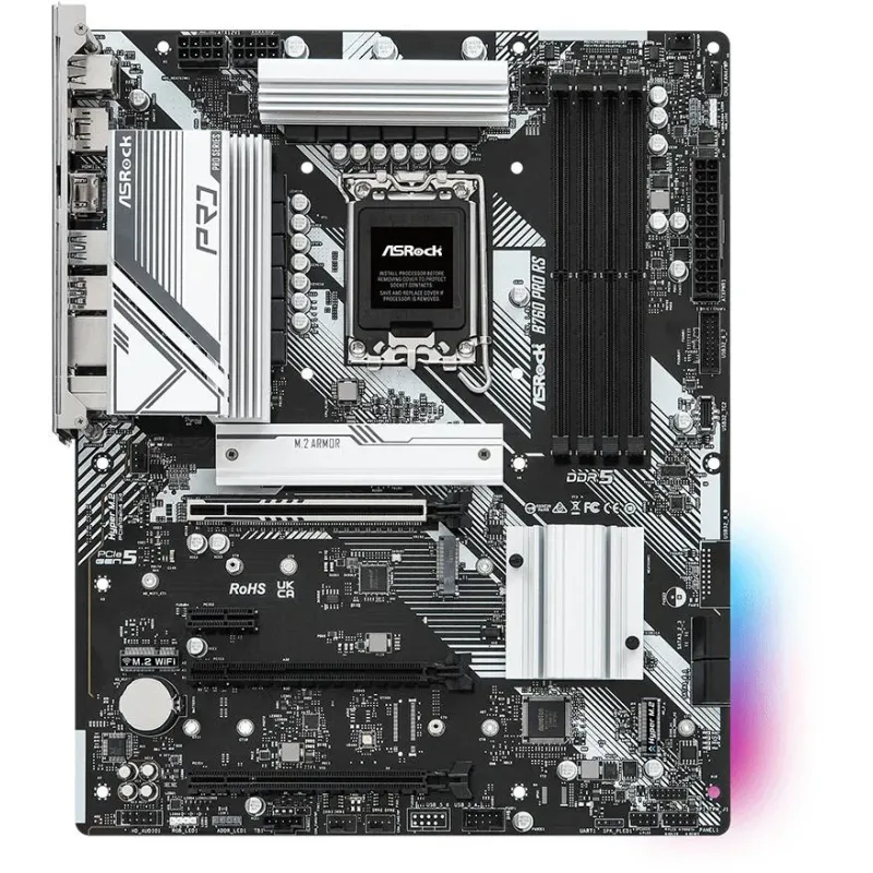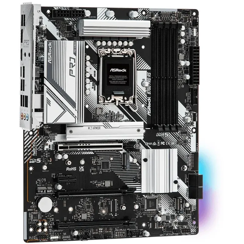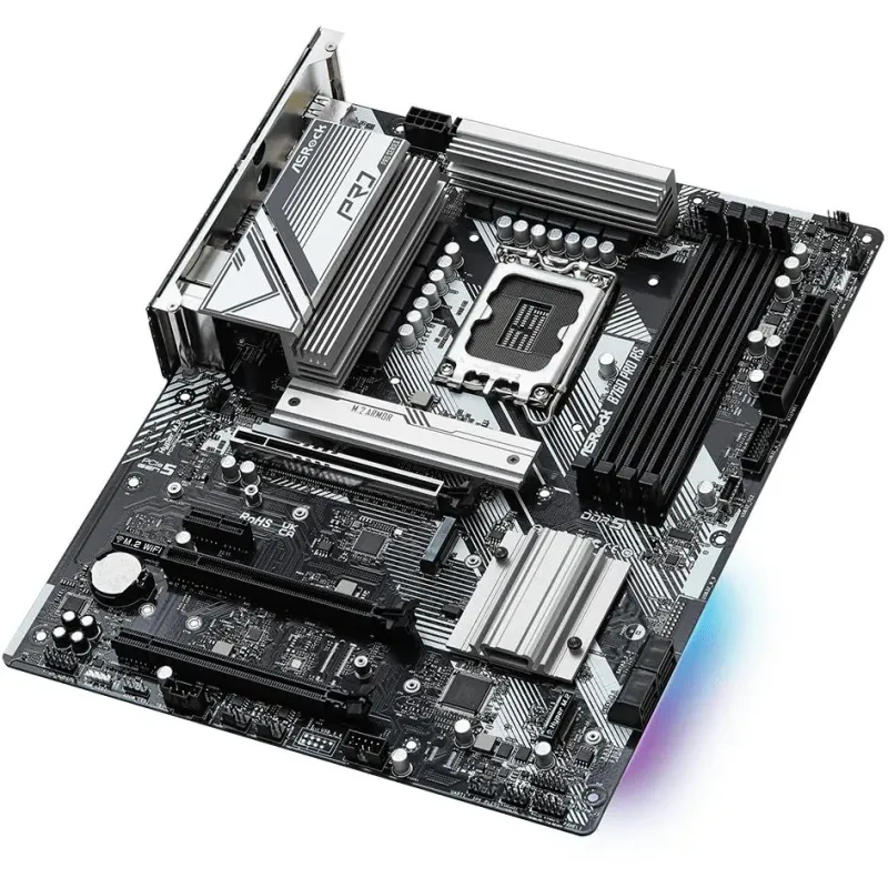 Placa Base ASRock B760 PRO RS con soporte para memoria DDR5 conectividad ethernet 2.5 gigabit y compatibilidad con procesadores Intel LGA 1700.