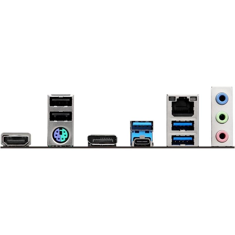 El panel trasero está equipado con una variedad de puertos, incluyendo USB 2.0 y 3.2 Gen 1, puertos Ethernet Gigabit, y opciones de video como HDMI y DisplayPort 1.4, asegurando una excelente conectividad y opciones de visualización. El chipset Intel B760 y el chip de sonido Realtek ALC897 ofrecen una experiencia de audio inmersiva con 7.1 canales, perfecto para una experiencia multimedia completa.