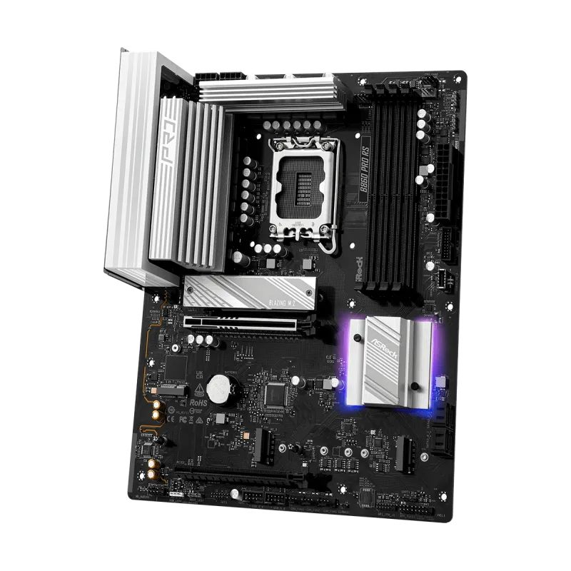 Placa Base ASRock B860 PRO RS con soporte para procesador Intel Core Ultra 9, memoria DDR5 5600 MHz, PCIe 5.0 y hasta 256 GB de RAM.