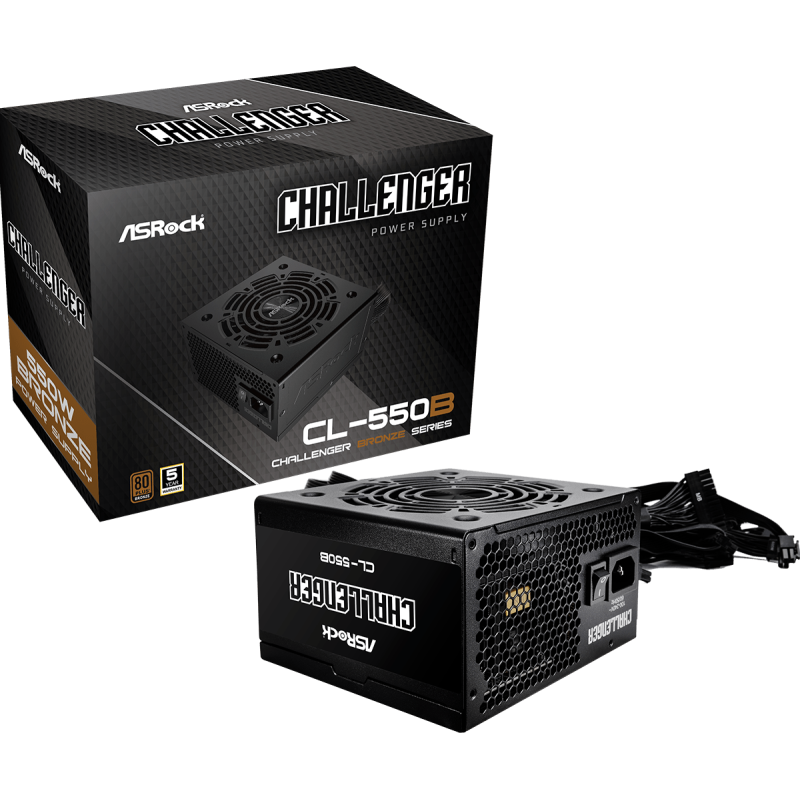 Fuente de Alimentación ASRock CL550B 550W con eficiencia 80 Plus Bronce, 45.8A en salida 12V, protecciones avanzadas