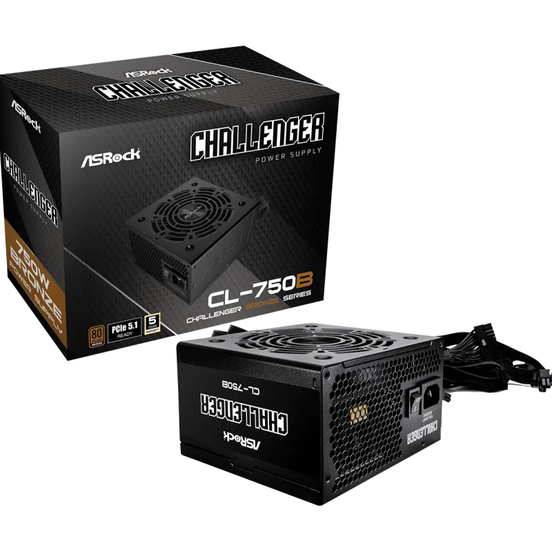 Fuente de Alimentación ASRock CL-750B con eficiencia 80 Plus Bronze, ventilador 120mm Golf-Blade, potencia de 750W