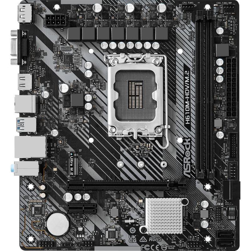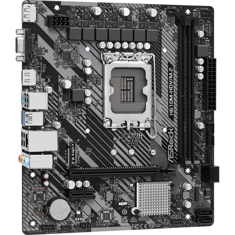 Placa Base Asrock H610M-HDV/M.2 R2.0 socket Intel LGA 1700, formato micro-ATX, RAM de hasta 64 GB DDR4, conectividad 1 GbE