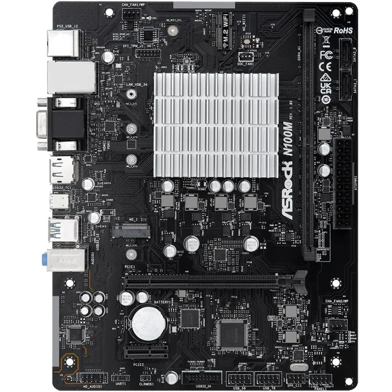 Placa Base Asrock N100M con procesador Intel N100, memoria DDR4 3200 MHz y gráficos Intel UHD