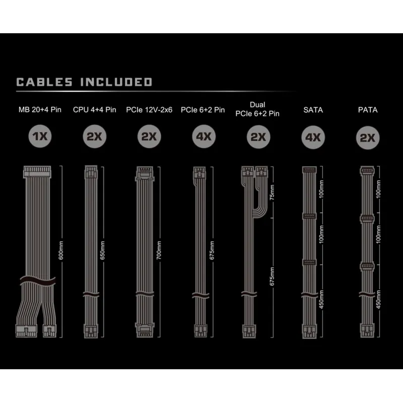 - Longitud del cable de alimentación CPU: 65 cm