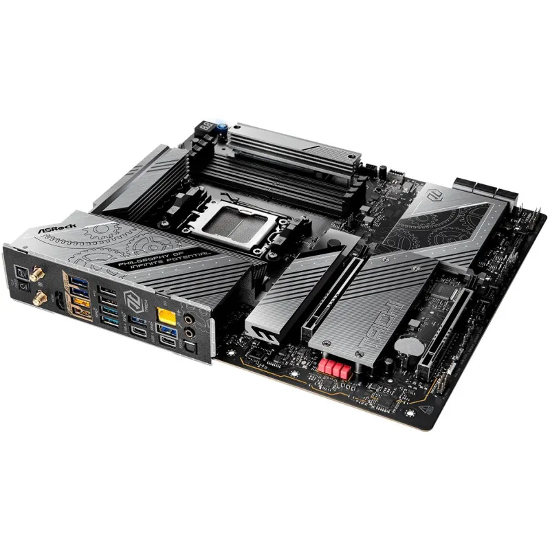 CHIPSET AMD X870 PARA UNA PLATAFORMA DE ALTO NIVEL: Equipada con el chipset AMD X870, la Placa Base ASRock X870E Taichi Lite ofrece una base tecnológica estable y avanzada. Este chipset no solo permite aprovechar al máximo los procesadores de última generación, sino que también garantiza una eficiencia energética optimizada. Además, proporciona compatibilidad con PCIe 5.0, lo que mejora significativamente el rendimiento de tarjetas gráficas y unidades SSD NVMe. La integración del chipset AMD X870 convierte a esta placa base en una solución ideal para quienes desean montar un equipo de alto rendimiento sin sacrificar estabilidad ni compatibilidad.