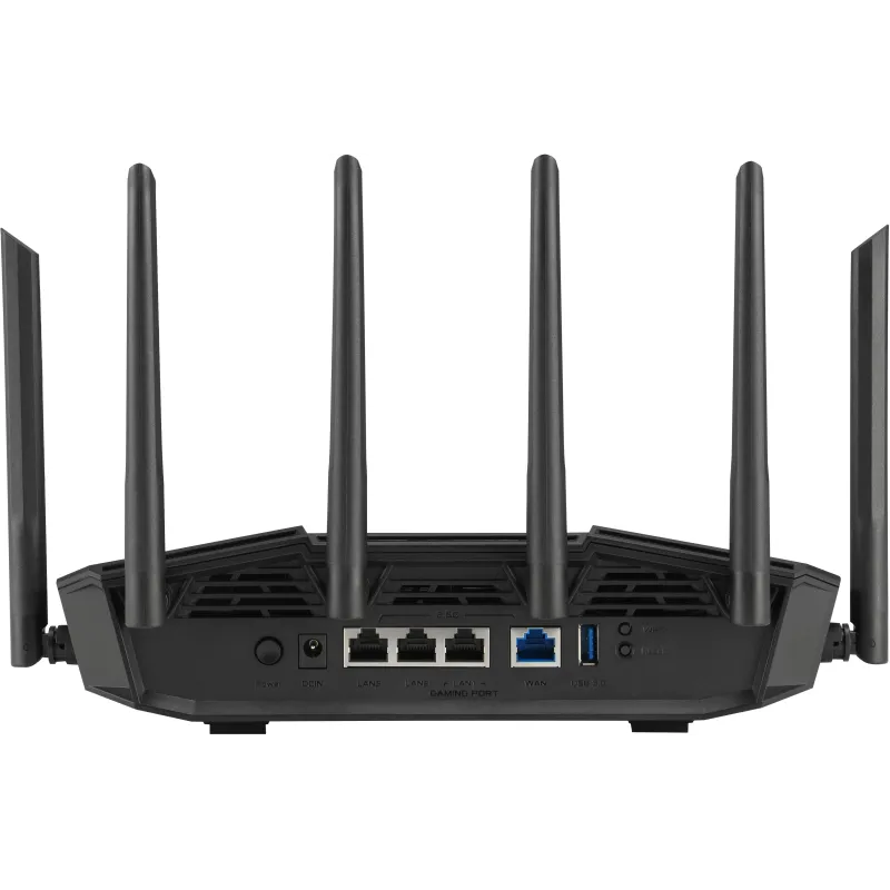 Router inalámbrico ASUS 90IG0A30-MO9C00 tribanda , con Wi-Fi 7, 2.5 Gigabit Ethernet, 6 antenas, MU-MIMO, QoS y soporte para VPN.