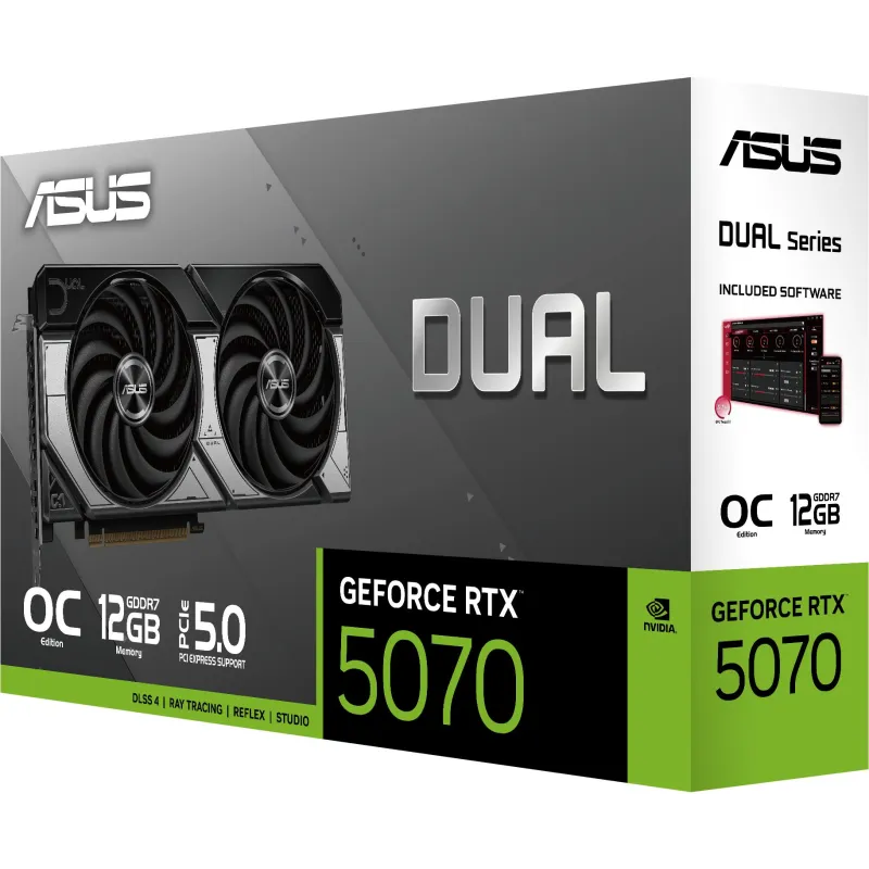 Tarjeta Gráfica Asus GeForce RTX 5070 Dual OC con memoria GDDR7 12 GB, interfaz PCI Express 5.0
