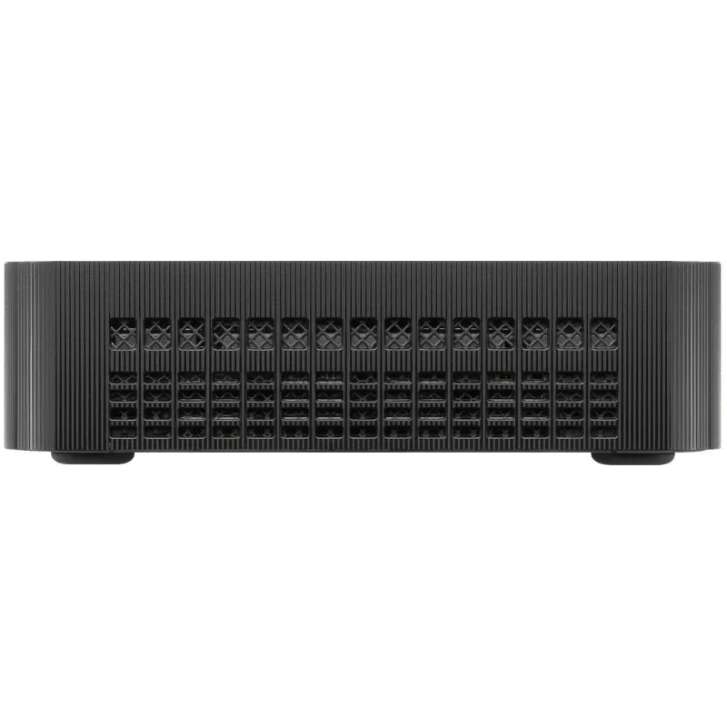El formato compacto (130 × 130 × 34 mm) tiene una consecuencia directa: encaja en mostradores, recepciones, aulas o backoffice donde una torre sobra. También ayuda si quieres dejar el escritorio limpio o esconder el equipo sin complicarte con montaje. Es un PC “de estar”, pensado para funcionar como herramienta de trabajo y desaparecer visualmente.
