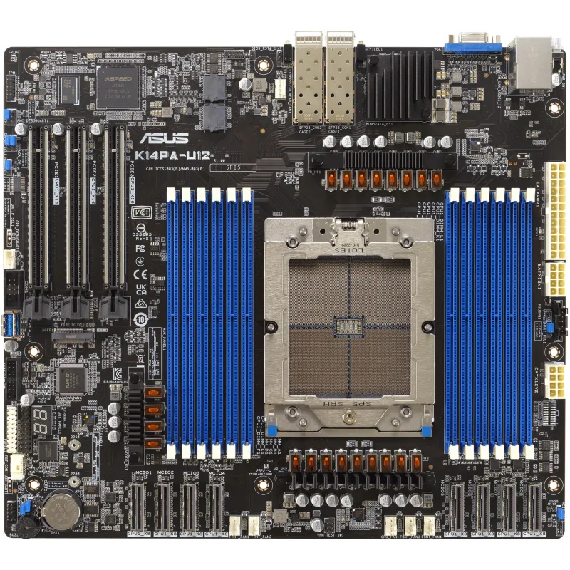 Placa Base Asus K14PA-U12/ASMB11 con soporte DDR5-SDRAM, socket SP5 para procesadores AMD EPYC 9004, 12 ranuras de memoria y conectividad 25 Gb Ethernet