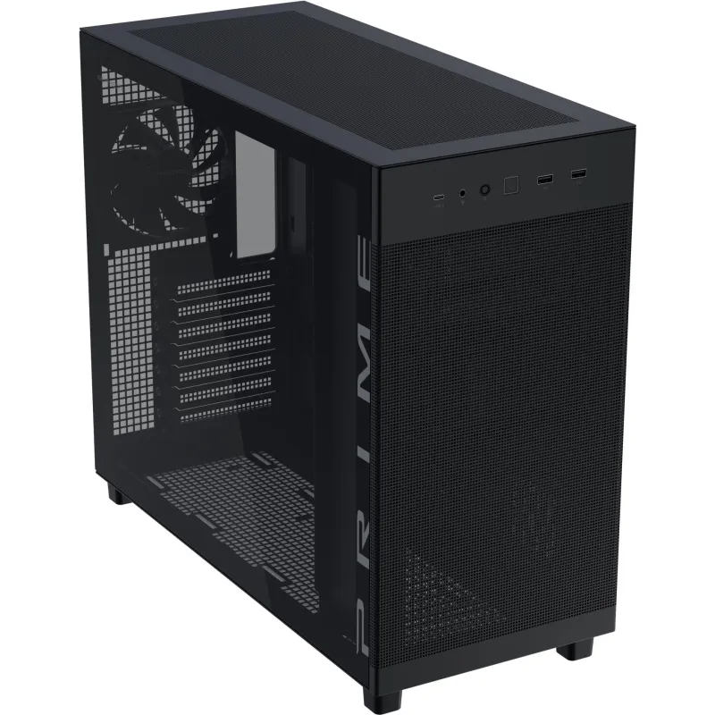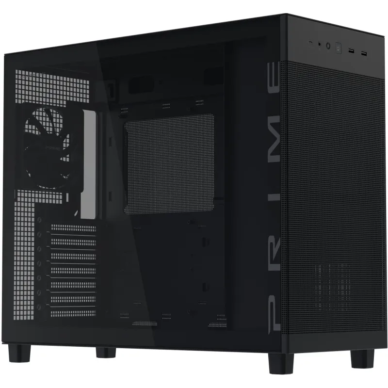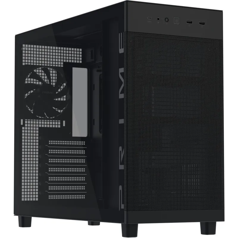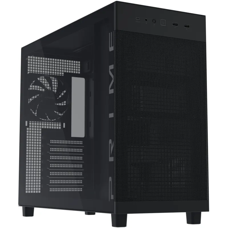 Torre ASUS Prime AP303 TG Negra con panel de vidrio templado, conexión USB-C 3.2 , ventilador trasero 120 mm y soporte para placas ATX, micro ATX y Mini-ITX