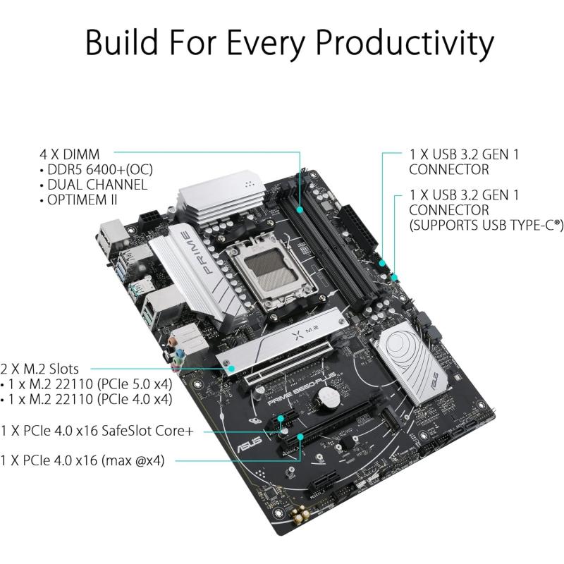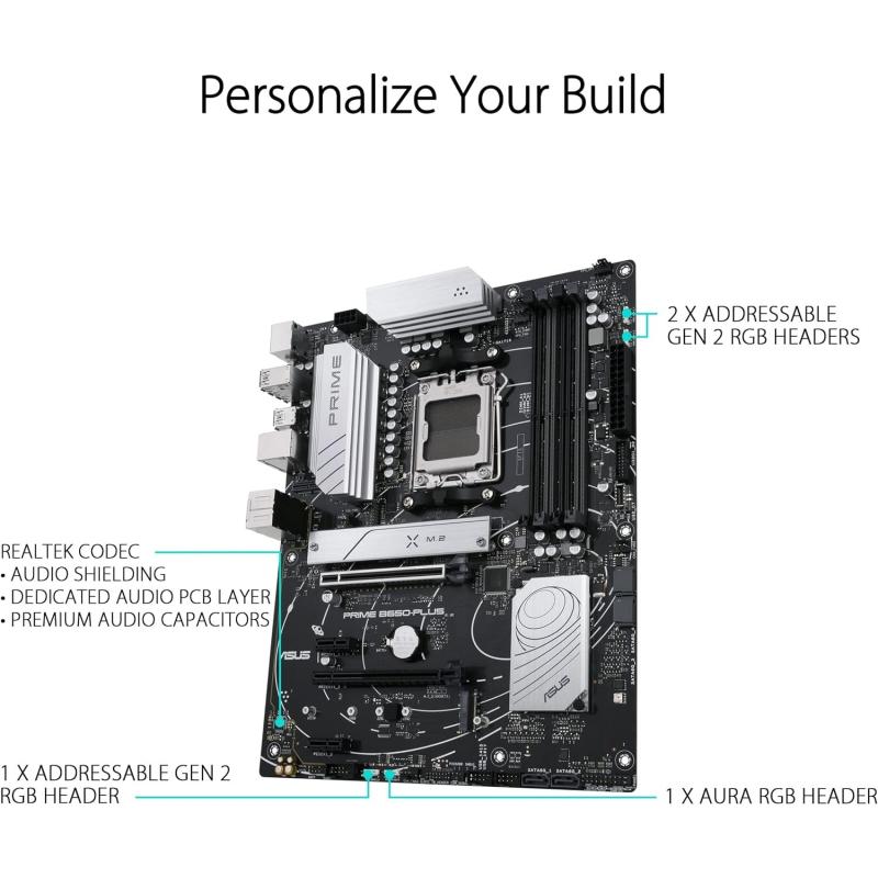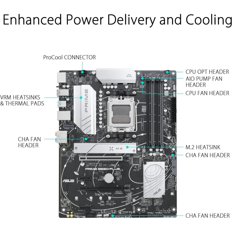 DISEÑO DE ENERGÍA ROBUSTO: La energía estable es esencial para extraer hasta el último bit de rendimiento de los procesadores AMD. El PRIME B650-PLUS está diseñado para satisfacer las demandas de estas CPU de alto número de núcleos.