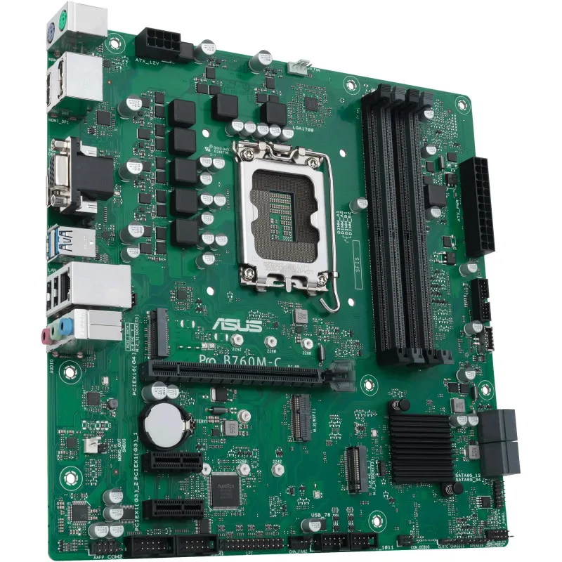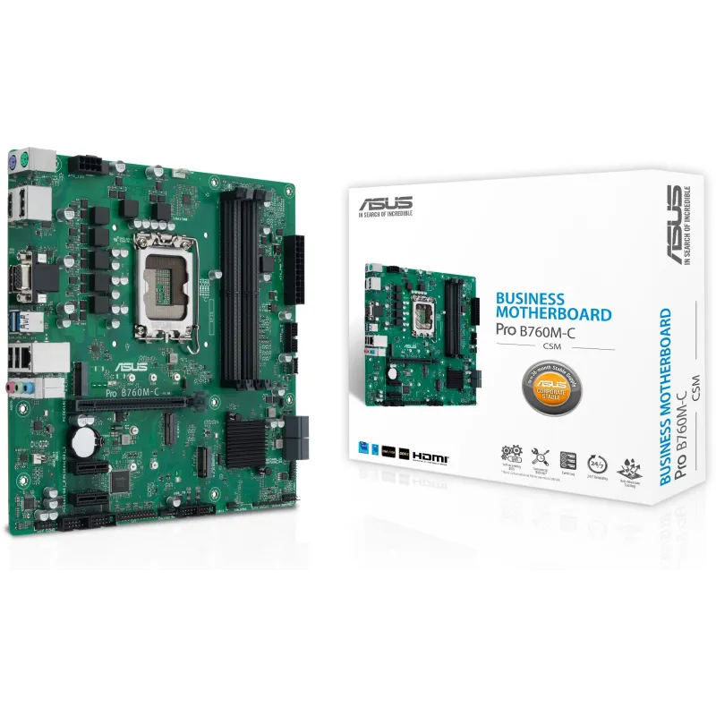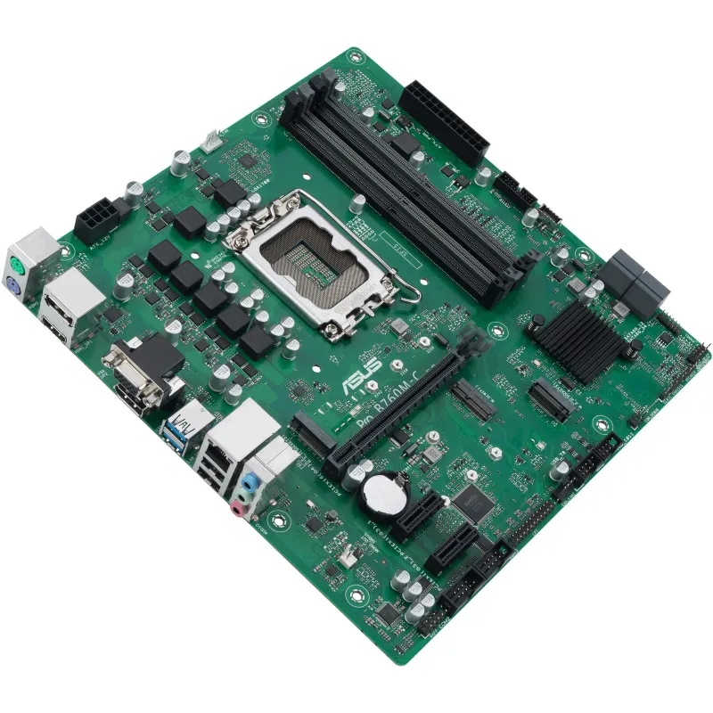 La Placa Base Asus PRO B760M-C-CSM ha sido diseñada para ofrecer un rendimiento fiable y estable en equipos de sobremesa de alto nivel. Esta placa base es compatible con una amplia gama de procesadores Intel, incluyendo las series Intel® Core™ i3, i5, i7 e i9, así como con Intel® Celeron® y Pentium®, gracias a su socket LGA 1700. Su diseño en formato micro ATX permite una integración sencilla en múltiples configuraciones, sin sacrificar funcionalidad. Dispone de cuatro ranuras DIMM que soportan memoria DDR5 6200 MHz, lo que proporciona un alto ancho de banda y mejor capacidad de respuesta. Además, cuenta con dos ranuras M.2 y soporte para RAID 0, 1, 5 y 10, lo que garantiza un rendimiento de almacenamiento versátil y seguro. La Placa Base Asus PRO B760M-C-CSM también incorpora múltiples puertos USB, conectividad Ethernet Gigabit y salidas de vídeo HDMI y DisplayPort, asegurando compatibilidad total con periféricos modernos.